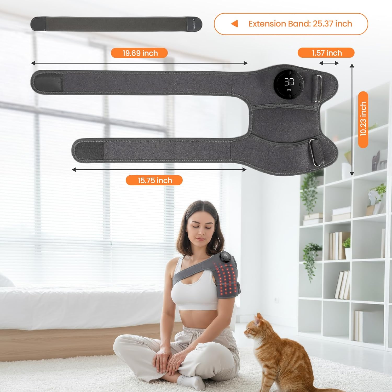 Adjustable Heat, Light & Vibration: Equipped with 3 vibration settings, 5 red light modes, and a 30-minute timer, allowing full control over intensity and warmth for a personalized, soothing therapy session.