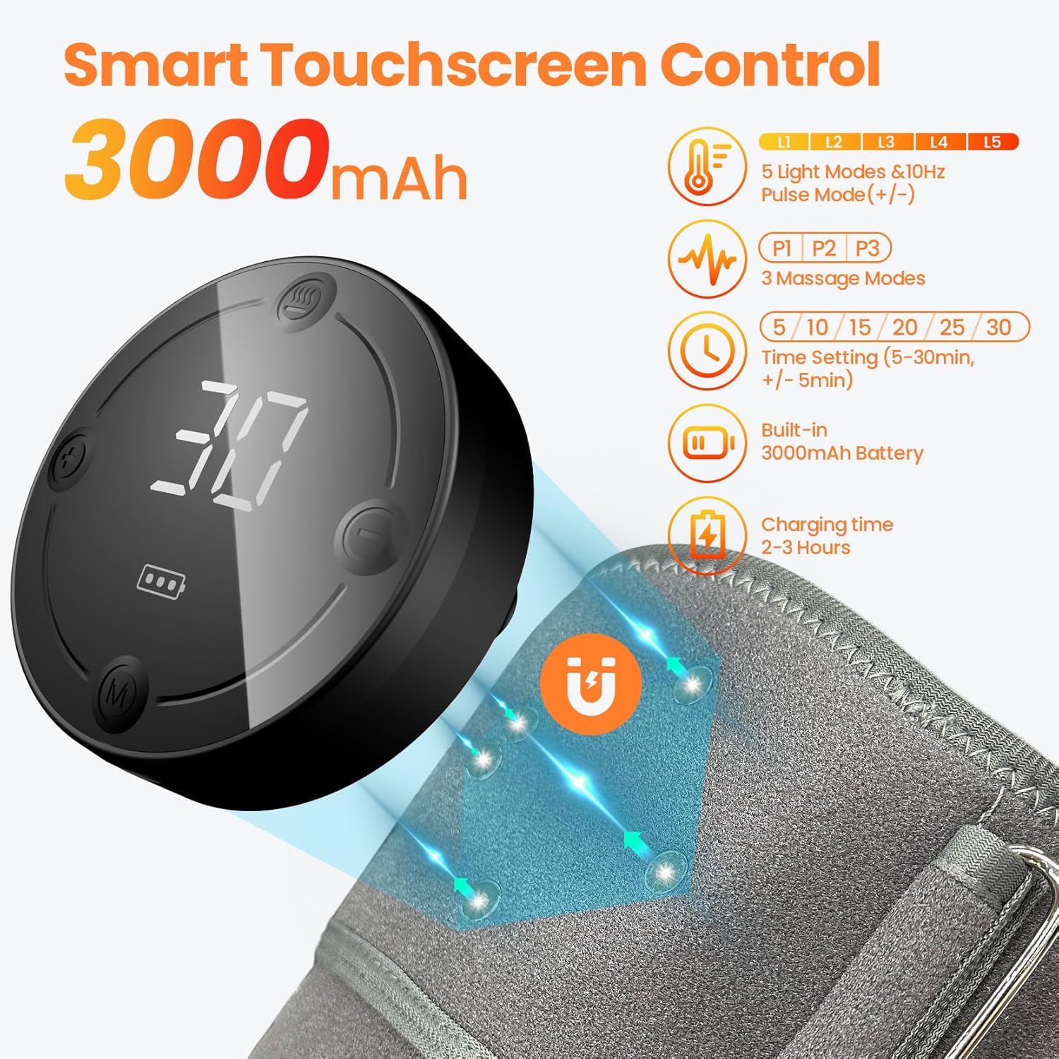 Dual Wavelength LED Therapy: Combines 660nm red light and 850nm near-infrared light across 48 LEDs to penetrate deep into the tissue, helping boost circulation and relieve tension around the knees and joints.